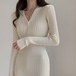 ワンピース ドレス シャツワンピース ホワイト 大きいサイズ Vネック 長袖 春 秋 ウエストマーク 細見え 着痩せ プリーツスカート お呼ばれ パーティー セレブカジュアル セクシー 可愛い