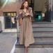 ワンピース ニットドレス レディース ガールズ カジュアル 長袖 千鳥格子 ミディ丈 ミリタリー ハイウエスト 秋冬 あたたか レトロ 襟 セーター