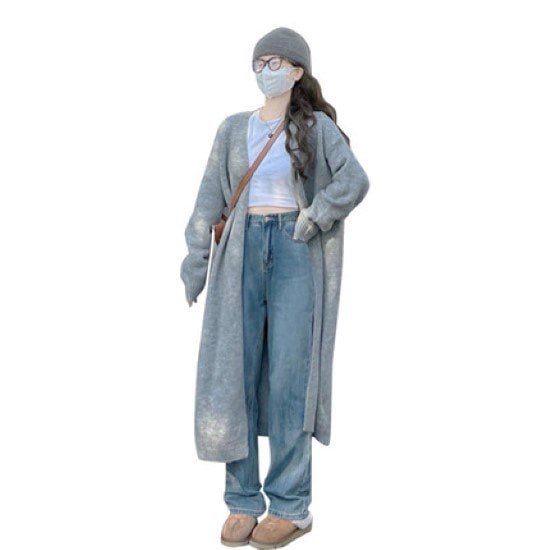 ニット ジャケット 長袖 ジップアップ 前あき 秋冬レディース モコモコ 羽織り ルーズフィット 大きいサイズ 着やせ 韓国 ゆったり あったかい ロング丈 アウター 通学