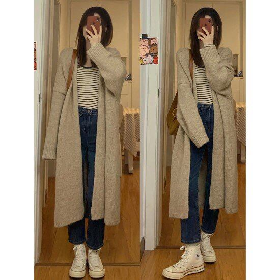 ニットカーディガン セーター 長袖 レディース秋冬 羽織 ロング 厚手 カジュアル 通勤 通学 オフィス 定番 きれいめ 着やせ Vネック 前あき 防寒対策 30代 40代 アウター 部屋着