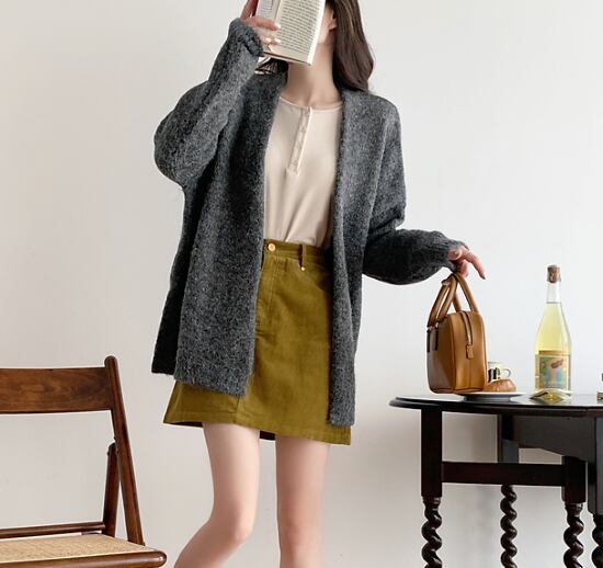 ニット ジャケット 長袖 ジップアップ 前あき 秋冬レディース モコモコ 羽織り ルーズフィット 大きいサイズ 着やせ 韓国 ゆったり あったかい ロング丈 アウター 通学