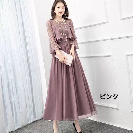 ドレス ロング パーティー お呼ばれ 結婚式 二次会 披露宴 お食事会 レース 刺しゅう 衣装 大人 ドレス 大きいサイズ ドレス 袖付き ワンピース エレガント ドレス イブニングドレス 結婚式