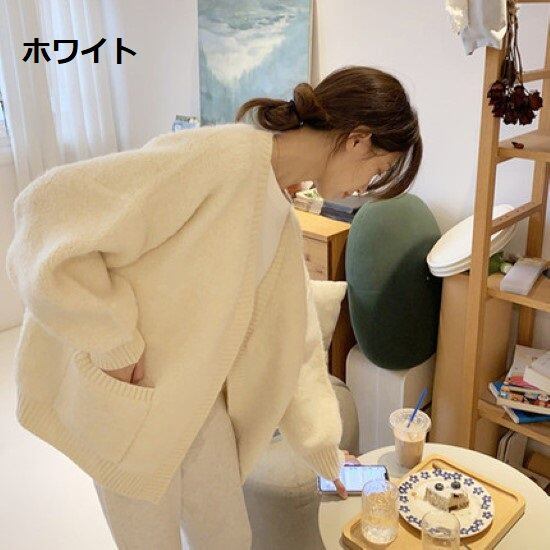ニット ジャケット 長袖 ジップアップ 前あき 秋冬レディース モコモコ 羽織り ルーズフィット 大きいサイズ 着やせ 韓国 ゆったり あったかい ロング丈 アウター 通学