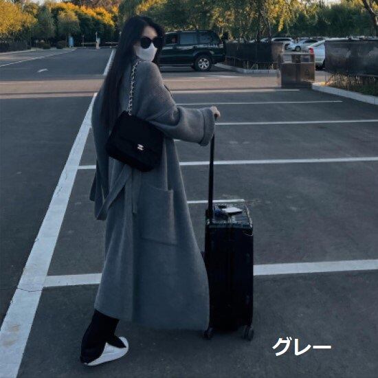 ロングコート レディース アウター 秋 大きいサイズ ベルト付き チェスターコート 大人可愛い 韓国 オルチャン ブラック ウールコート 超ロングコート