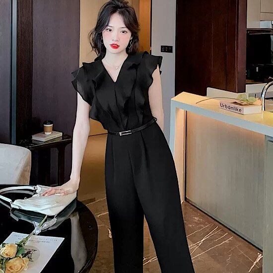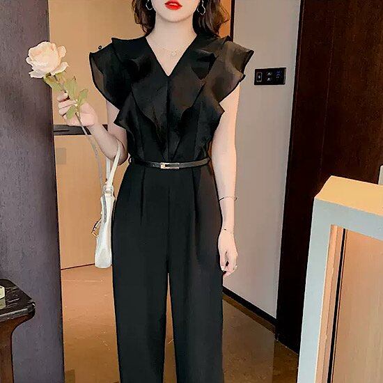 パンツドレス レディース ジャンプスーツ オールインワン ホルターネック ワイドパンツ ノースリーブ ハイウエスト 黒 ブラック きれいめ エレガント スタイリッシュ お呼ばれ フォーマル 披露宴