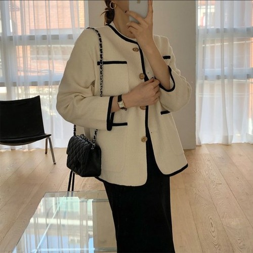 トレンドのノーカラーが可愛いツイードジャケット。 ツイード柄と金ボタンが上品な雰囲気を演出。 様々なボトムに合わせやすく、着崩してカジュアルにもお使いいただけます。 【カラー】 ホワイト、ブラック 【サイズ】 ワンサイズ 【ワンサイズ】 バスト:108cm 袖丈:52cm 肩幅:45cm 着丈:65cm ※測り方によって1−3cmの誤差が生じる場合が御座います。 gii-102 ジャケット レディース ノーカラージャケット アウター ツイードジャケット ジャケット秋冬 冬新作 ツイード カジュアル 通勤 オフィス エレガント 金ボタン 可愛い アウター レディース こちらの商品は【取り寄せ商品】です。 御注文確定後、海外メーカーより取り寄せます。 お届けまでの目安は14日〜24日程度です。 数あるショップの中からご覧いただきありがとうございます! ショップの注意事項をよく読んでから、ご購入をお願い致します。 *注意事項 1)取引最後まで責任を持って対応いたします。トラブル防止の為遠慮なく質問して下さい。 2)商品到着後に関して、サイズ変更、カラーやイメージが違う、実寸が違う等を気にされる方のクレーム、返品、交換は一切お受けしておりません。そのような方のご購入は予めご遠慮下さい。(破れ破損の初期不良は除く) 3)検品はしっかりと行っておりますが、海外製品は多少の縫製ミス、糸のほつれ、細かい不具合、多少の色の違い、イメージ違い等がごく稀にございます。ご理解の上ご購入をお願いします。 4)届けまでの目安は14日〜24日程度です。 ご注文を頂いても海外のメーカーにて完売の場合は 商品をお届けする事ができませんので キャンセルとさせていただく場合がございます。 5)お客様の個人情報は発送以外に使用することは一切ございません。 6)ご注文確定後のお客様都合によるキャンセル、サイズ交換、カラー交換はお受けすることが出来ません。 サイズ、カラー交換は当店に在庫のある商品のみとなります。 在庫品の交換に関しましても、往復送料と手数料のご負担をお願いしております。