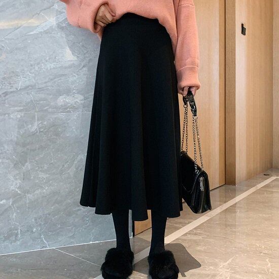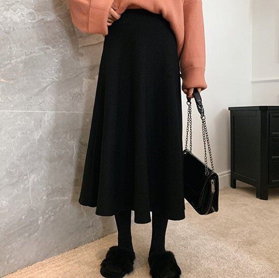 スカート 膝丈 ブラック ミモレ丈 エレガント あったか 大きいサイズ レディース 4XL ハイウエスト 上品 秋 冬 Aライン 通勤 通学 スタイルアップ かわいい 10代 20代 30代