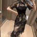 ドレス ロング パーティー お呼ばれ 結婚式 二次会 披露宴 お食事会 レース 刺しゅう 衣装 大人 ドレス 大きいサイズ ドレス 袖付き ワンピース エレガント ドレス イブニングドレス 結婚式