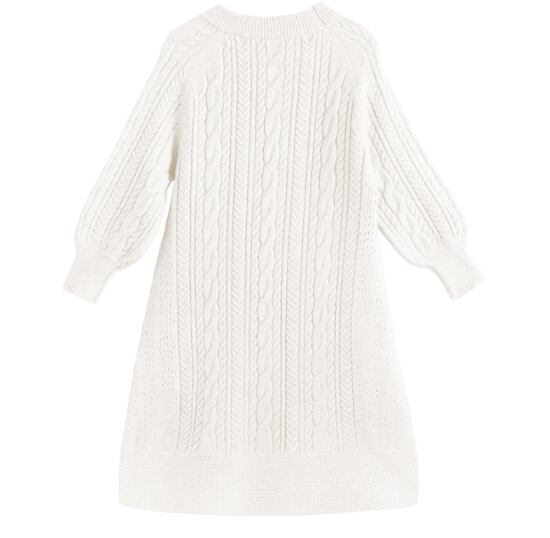 ワンピース ニットドレス レディース ガールズ エレガント 長袖 フリース あったか ミディ丈 秋冬 新作 通勤 キレイ レース ラウンドネック