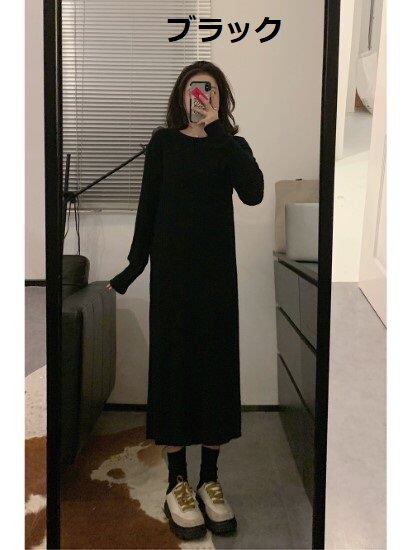 ワンピース ニットドレス レディース ガールズ エレガント 長袖 フリース あったか ミディ丈 秋冬 新作 通勤 キレイ レース ラウンドネック
