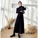 ワンピース ニットドレス レディース ガールズ カジュアル 長袖 千鳥格子 ミディ丈 ミリタリー ハイウエスト 秋冬 あたたか レトロ 襟 セーター