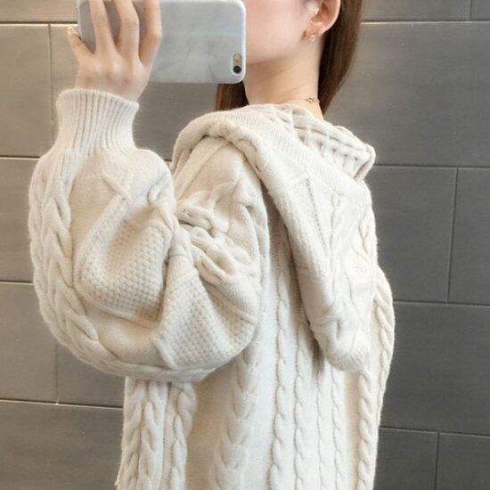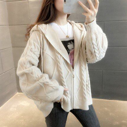 ニット ジャケット 長袖 ジップアップ 前あき 秋冬レディース モコモコ 羽織り ルーズフィット 大きいサイズ 着やせ 韓国 ゆったり あったかい ロング丈 アウター 通学