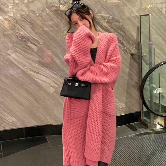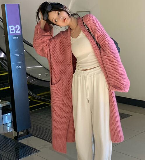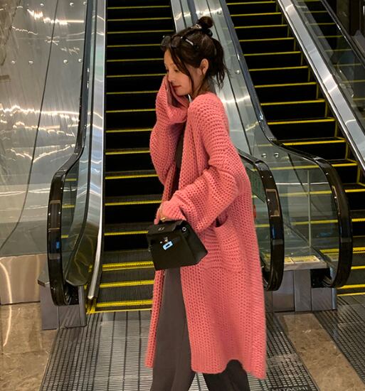 ニット ジャケット 長袖 ジップアップ 前あき 秋冬レディース モコモコ 羽織り ルーズフィット 大きいサイズ 着やせ 韓国 ゆったり あったかい ロング丈 アウター 通学