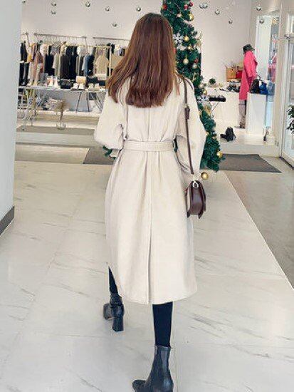 ロングコート レディース コート ロング丈 アウター 羽織 長袖 ウエストベルト きれいめ エレガント カジュアル お出かけ 襟あり ダブルブレスト ベージュ 秋冬 おしゃれ ロングコート レディース