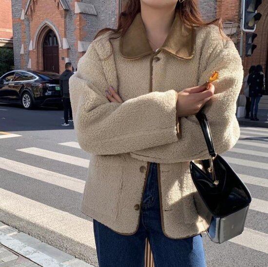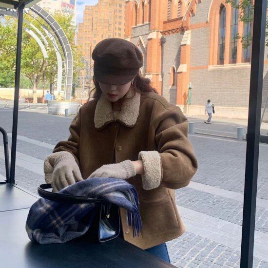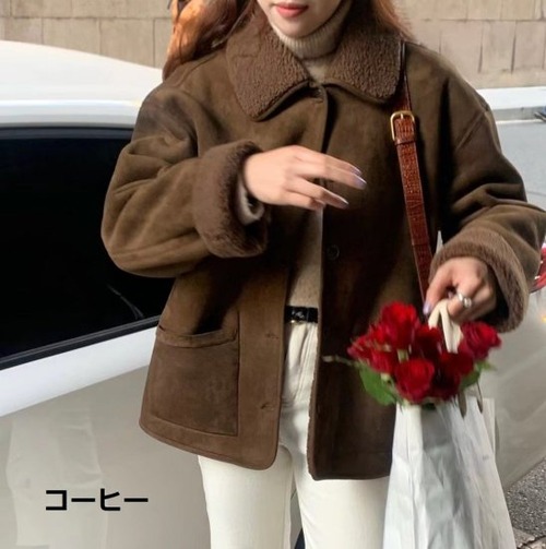 ボアジャケット スエードジャケット リバーシブル フェイクムートン ショート丈ジャケット ショートコート ブルゾン アウター ブラウン レディース かわいい カジュアル バイカラー 暖か 防寒 秋冬