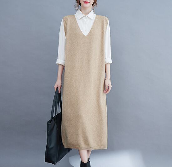 ノースリーブワンピース レディース ワンピース ノースリーブ 袖なし Vネック シンプル 無地 プルオーバー カジュアル お出かけ おしゃれ きれいめ ストレート 膝下ワンピース ノースリーブ