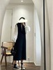 ノースリーブワンピース レディース ワンピース ジャンパースカート ノースリーブ Vネック シンプル 無地 ロング丈 レイヤードスタイル カジュアル お出かけ おしゃれ ベスト 黒 ブラック