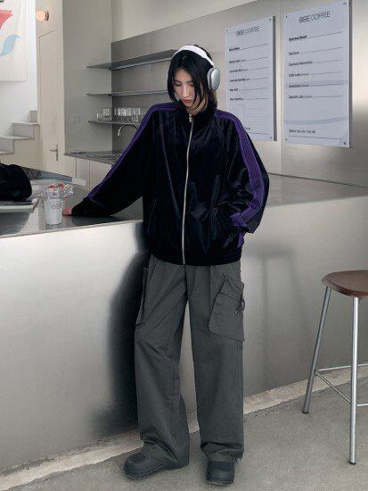 ジャケット レディース 羽織 アウター カジュアルジャケット フロントジッパー 長袖 スタンドカラー スポーティー カジュアル お出かけ おしゃれ クール 袖ライン ゆったり ルーズ ジャケット