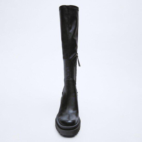 ロングブーツ レディース ブーツ 靴 シューズ ロング 厚底 太ヒール チャンキーヒール カジュアル お出かけ おしゃれ シンプル 無地 サイドジッパー 黒 ブラック 美脚 ロングブーツ レディース