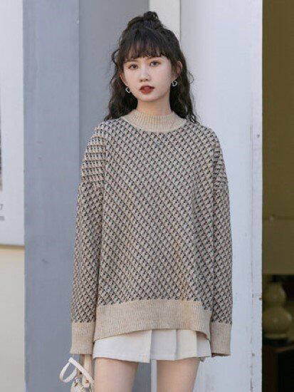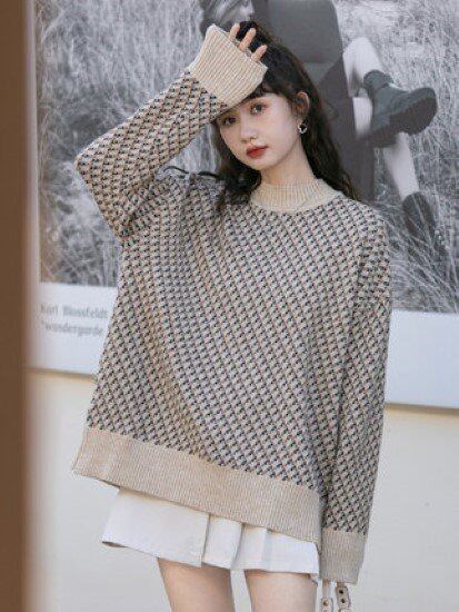 ニットトップス レディース ニット セーター トップス プルオーバー 総柄 長袖 ハイネック ゆったり ルーズシルエット カジュアル お出かけ おしゃれ 秋冬 レトロ ニットセーター トップス 女性