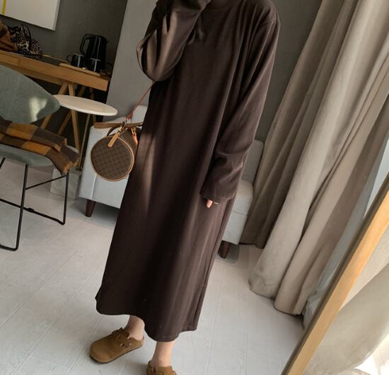 ニットワンピース レディース ロングワンピース ワンピース ロング丈 プルオーバー ラウンドネック リブニット 長袖 シンプル 無地 カジュアル ゆったり ルーズシルエット 秋冬 ニットワンピ
