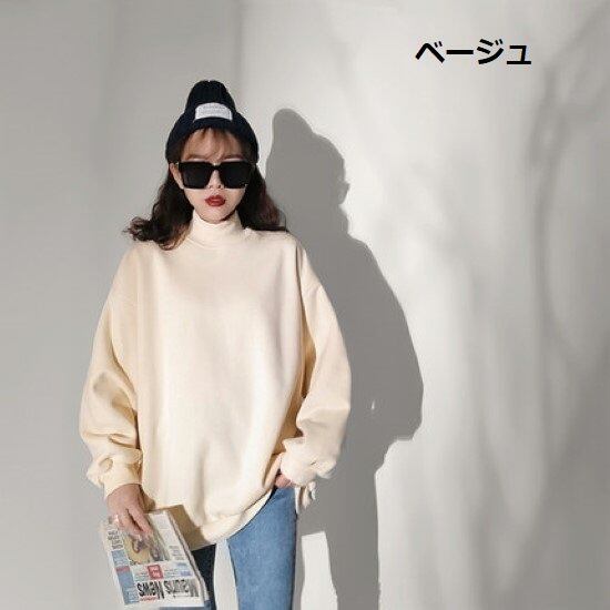 ニットトップス レディース ニット スウェット トップス プルオーバー ハイネック シンプル 無地 ゆったり ルーズシルエット カジュアル お出かけ ベーシック 定番 トップス 女性