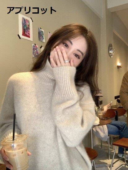 ニットトップス レディース ニット セーター トップス 長袖 ハイネック タートルネック シンプル 無地 定番 ベーシック プルオーバー カジュアル お出かけ きれいめ ゆったり ルーズシルエット
