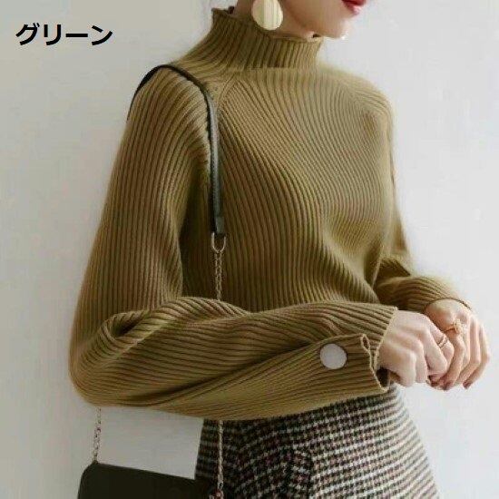 ニットセーター レディース ニット トップス セーター ハイネック リブニット 袖ボタン シンプル 無地 カジュアル お出かけ おしゃれ きれいめ 長袖 プルオーバー ゆったり ニットセーター ボタン