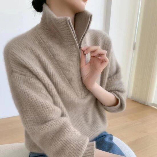 ニット ジャケット 長袖 ジップアップ 前あき 秋冬レディース モコモコ 羽織り ルーズフィット 大きいサイズ 着やせ 韓国 ゆったり あったかい ロング丈 アウター 通学