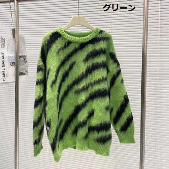 ニットセーター レディース ニット トップス セーター ゼブラ柄 アニマル柄 長袖 ラウンドネック プルオーバー ふわふわ ソフト 柔らかい 起毛 モヘア カジュアル お出かけ おしゃれ ゆったり