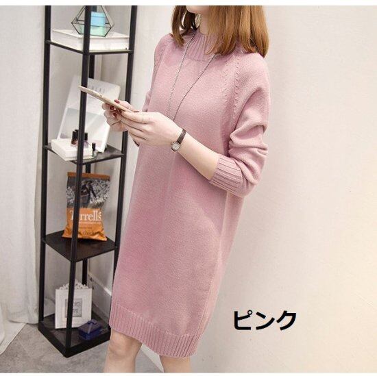 ニットワンピース ニットトップス チュニック ミニワンピース ロングニット ロングセーター ハイネックニット ボトルネック レディース ワンピース きれいめ カジュアル 体型カバー おしゃれ 秋 冬