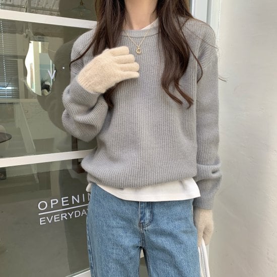 ニットトップス リブニット クルーネックセーター ゆったり 長袖 ニットセーター ラウンドネック リブニットセーター レディース ホワイト グレー ピンク リラックス かわいい カジュアル 秋冬