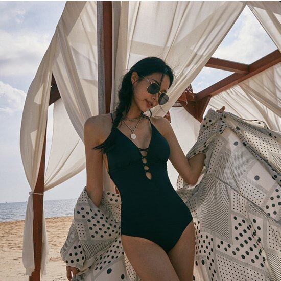 水着 レディース 体型カバー オールインワン モノキニ お洒落 レースアップ ワンピース プール リゾート セクシー シンプル ブラック 水着 レディース 体型カバー オールインワン モノキニ