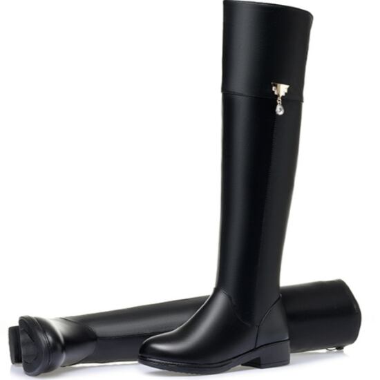 ロングブーツ レディース 大きいサイズ あたたか レザー 牛革 レディース ローヒール 歩きやすい 防寒 無地 レディース 防風 チャーム サイドファスナー ファスナー フリース