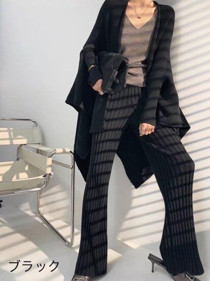 リブニットパンツ ロング ストレッチ フレア ゆったり 大きめ リブニットパンツ リブパンツ フレアパンツ ウエスト ゴム リブニットパンツ ロング ストレッチ フレア ゆったり 大きめ