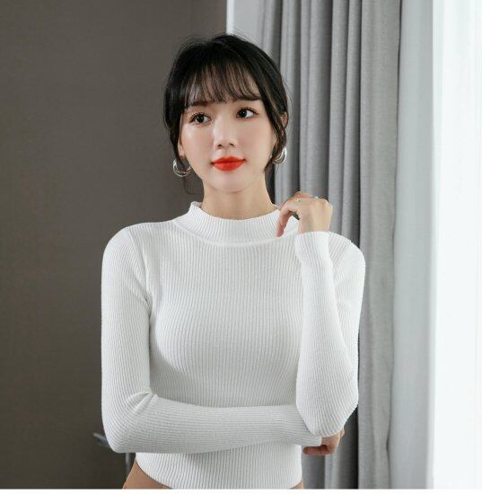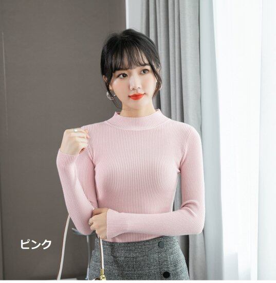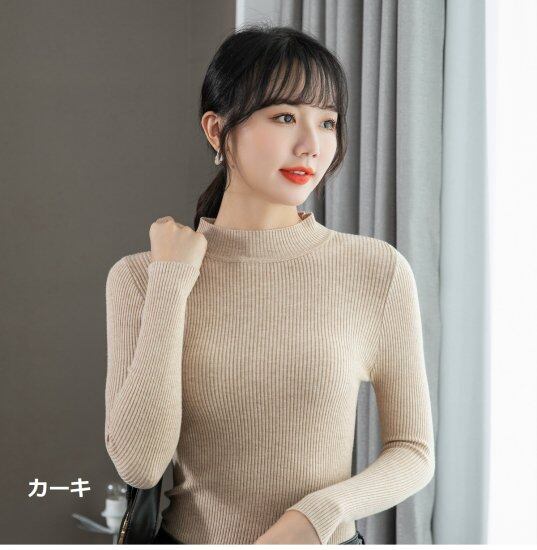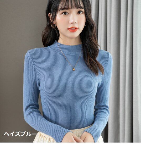 ニットトップス ハイネックセーター リブニットセーター ハーフネック ボトルネック スリム フィット レディース ブラック ホワイト インナーニット カラーバリエーション 10color おしゃれ