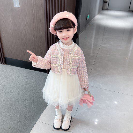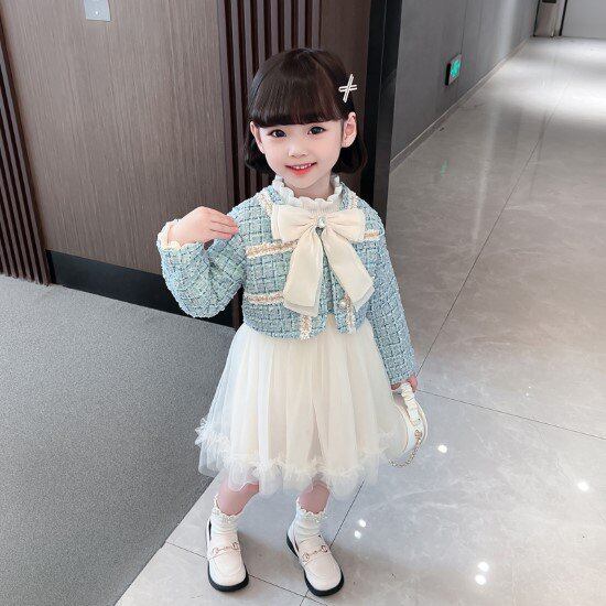 卒園式 子供服 ジャケット ワンピース ツーピース 2点セット 女の子 キッズ ガールズ ノースリーブワンピース 異素材 長袖 リボン 入園式 入学式 発表会 お呼ばれ フォーマル パールボタン