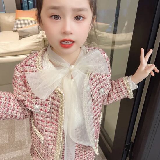 卒園式 子供服 ジャケット シャツ スカート 3点セット スリーピース ノーカラー リボン 女の子 ガールズ キッズ パールボタン シングルブレスト お呼ばれ フォーマル 発表会 入学式 入園式