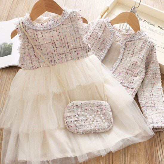 卒園式 子供服 ジャケット ワンピース ノースリーブワンピース ツーピース 2点セット 長袖ジャケット 異素材 ティアードスカート ノーカラー 膝丈ワンピース お呼ばれ 入学式 発表会 可愛い