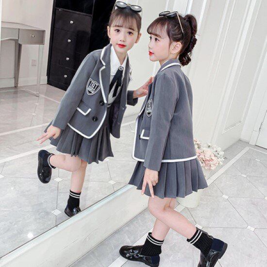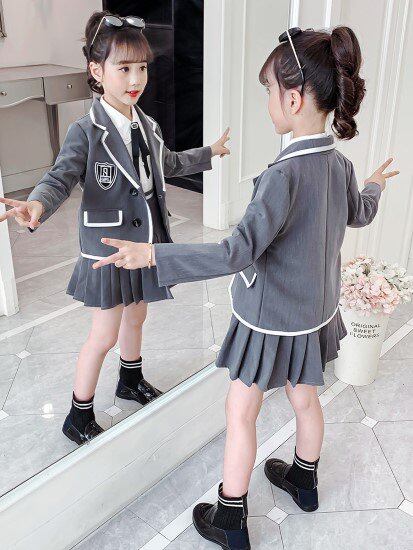 卒園式 子供服 ジャケット スカート シャツ 3点セット スリーピース スーツ 入園式 入学式 女の子 ガールズ キッズ プリーツスカート 制服 長袖シャツ ボウタイ リボン フォーマル 上下セット