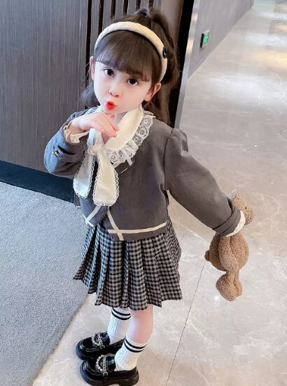 卒園式 子供服 ジャケット シャツ スカート スリーピース 3点セット スーツ チェック柄スカート レース リボン 長袖シャツ プリーツスカート 可愛い 制服 入園式 入学式 女の子 ガールズ キッズ