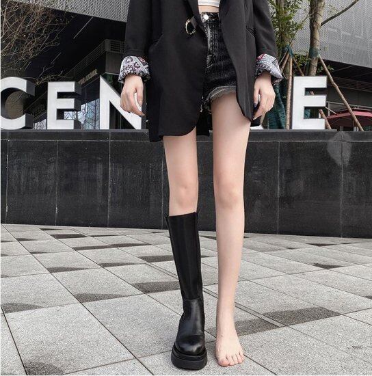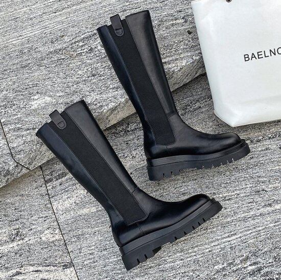 ロングブーツ サイドゴアブーツ 厚底ブーツ フェイクレザー エコレザー ラウンドトゥ バックファスナー 6cmヒール 黒 ブラック レディース 太ヒール カジュアル マニッシュ おしゃれ 厚底 秋冬