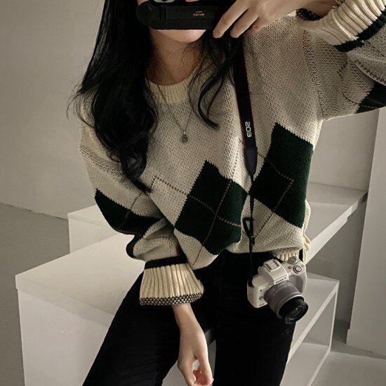 ニット レディース 大きいサイズ 秋冬 秋 冬 ニットセーター チェック柄 アーガイル柄 ダイヤ柄 アーガイルチェック ニットトップス ユニセックス メンズ メンズライク カジュアル ルーズ ゆったり