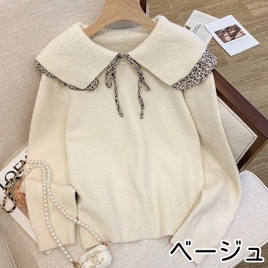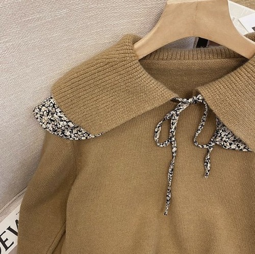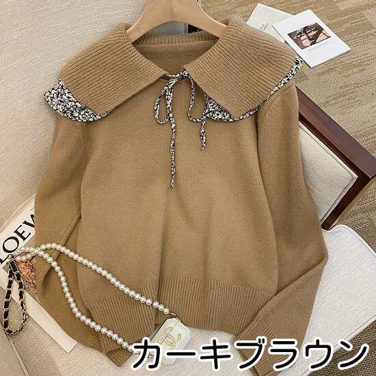 ニット レディース 秋冬 秋 冬 大きいサイズ リボン 花柄 セーター レディースニット ニットセーター ゆったり 襟あり ビックカラー ニットトップス ガーリー アースカラー 冬ニット 冬新作 長袖