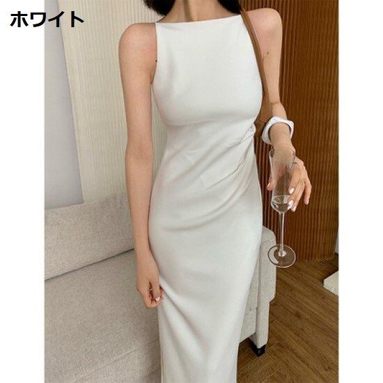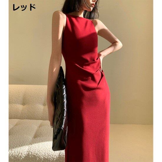パーティードレス レディース ノースリーブワンピース キャミソール シンプル 無地 きれいめ エレガント お呼ばれ フォーマル ロングワンピース 結婚式ドレス 演奏会ドレス スリット ジッパー