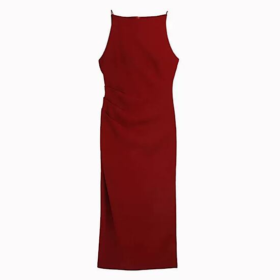 結婚式ドレス クラシック フレンチ ノースリーブ ラウンドネック 無地 スリム 細身 シンプル 発表会 演奏会 レディース 結婚式 ステージ衣装 ミディアム丈 エレガント カラードレス