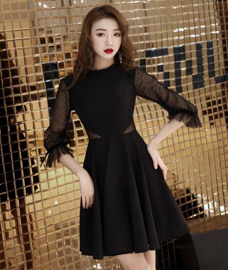 パーティードレス レディース ワンピースドレス 結婚式ドレス 演奏会ドレス ミニワンピース ラウンドネック シースルー メッシュ きれいめ お呼ばれ エレガント おしゃれ フォーマル 七分袖 女性