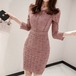 パーティードレス レディース 結婚式ドレス 演奏会ドレス ワンピースドレス スリムフィット タイト ラウンドネック ミニワンピース ショート 七分袖 レース きれいめ エレガント お呼ばれ フォーマル