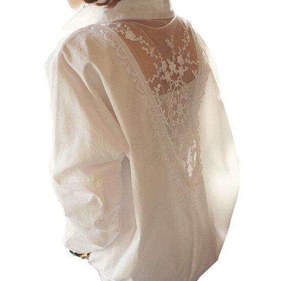 シフォンブラウス レディース トップス シフォンシャツ 長袖 白 ホワイト シースルー レース 襟あり ゆったり ルーズ カジュアル お出かけ おしゃれ きれいめ 春夏 プルオーバー ブラウス シャツ