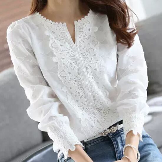 シフォンブラウス レディース 長袖シャツ レースブラウス トップス キーネック 白シャツ ホワイト プルオーバー カジュアル お出かけ おしゃれ きれいめ 春夏 ファッション 女性 シフォン レース